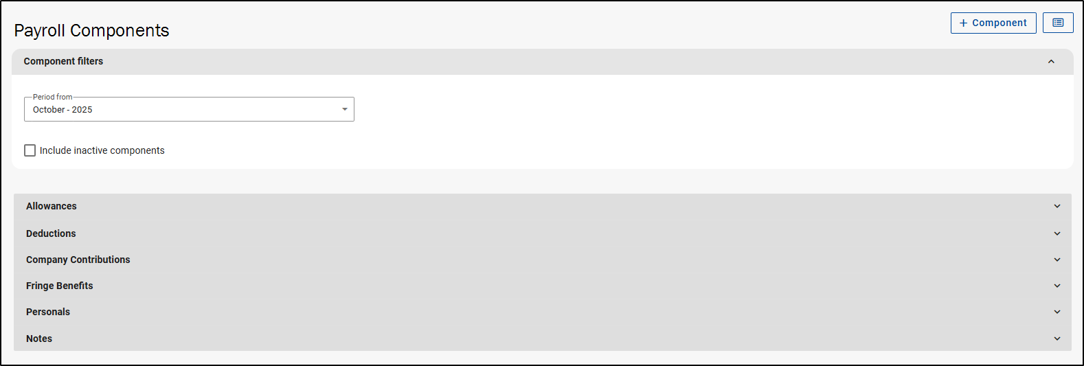 - Organised Component Options – Component options are now more intuitively grouped into three clear sections: Component Details, Extra Options and Payslip Options. This structured layout improves navigation and makes it easier to locate and configure specific component settings.