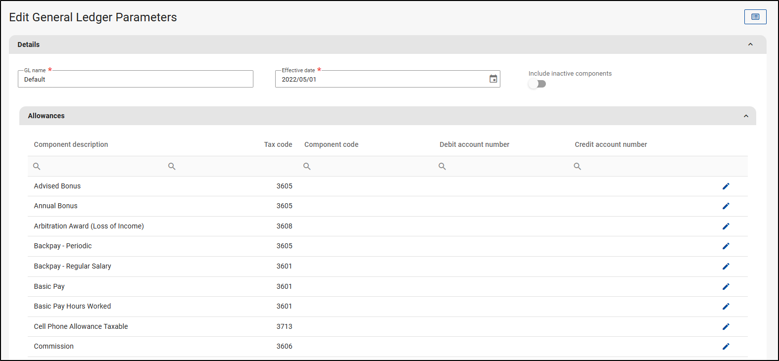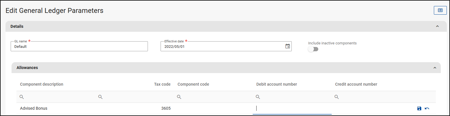 - Component Settings – Settings that were previously managed through the General Ledger Parameters screen are now available directly on the Payroll Components screen. This change reduces the need to switch between screens streamlining the setup process to enhance overall workflow efficiency.