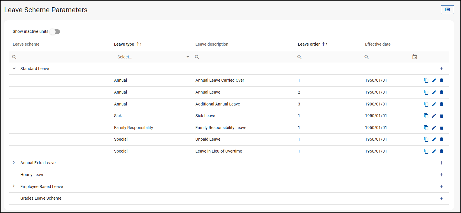- Intuitive Leave Type Management – A ‘+’ icon has been added next to the leave scheme name used to add leave types within each leave scheme. Leave schemes can now also be expanded or collapsed for better visual organisation.